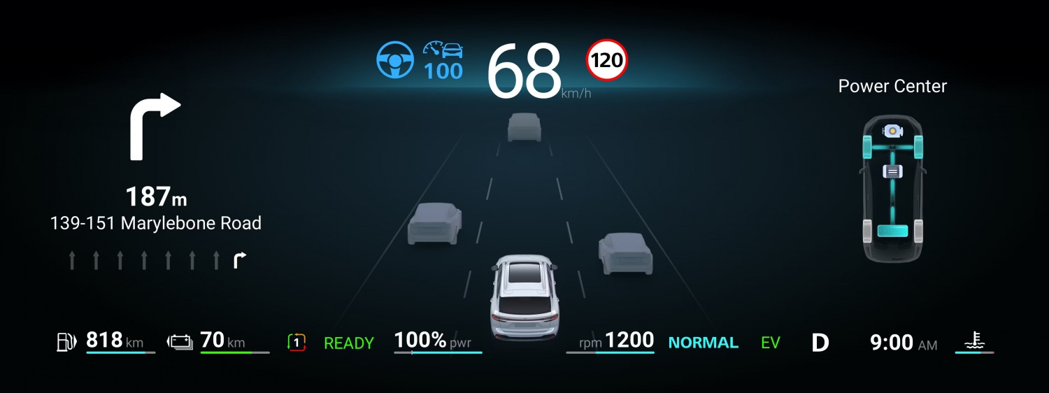 Ezeken felül egy erőteljes generátor 110 kW (150 LE) teljesítményt biztosít az elektromotor hatékony működtetéséhez. Az optimális motorteljesítmény fenntartása érdekében könnyű, kétfokozatú sebességváltó került beépítésre. A 21,4 kWh kapacitású akkumulátor - amely a kategóriájában az egyik legnagyobb - , lenyűgöző, több mint 100 km-es hatótávolságot biztosít elektromos üzemmódban.