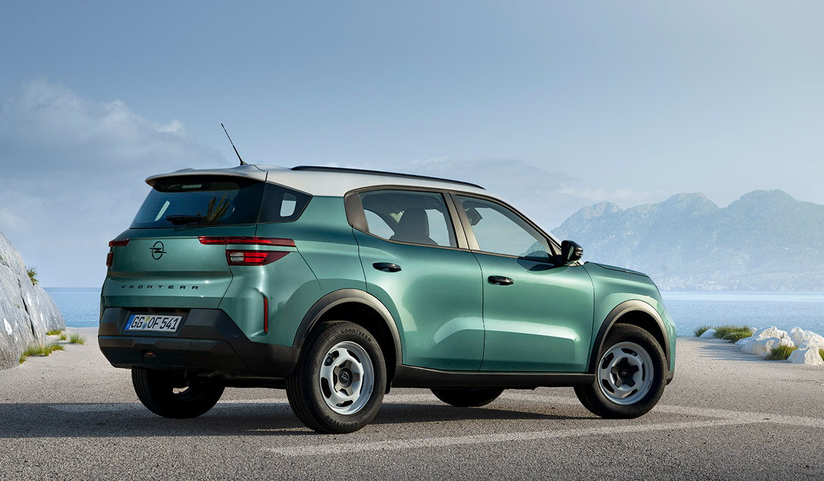 Merész, magabiztos megjelenés, LED-es fényszórók, hátsó tetőspoiler. Az alapmodell letisztult 16 colos acél keréktárcsákkal, valamint opcionálisan választható kontrasztos fehér tetővel/fehér keréktárcsákkal és tetősínekkel rendelkezik. A GS modell 17 colos gyémántvágott könnyűfém keréktárcsákkal, fekete tetővel és stílusos logóval van felszerelve. Ennél is jobb, hogy elhagytuk a krómot az új Frontera külsejéből, hogy egy kicsit jobban kíméljük a bolygót.
