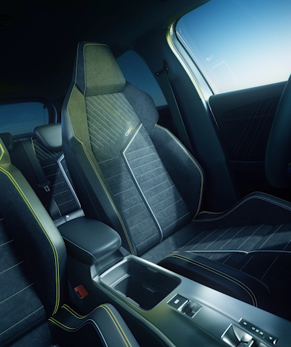 A hátsó lökhárító betétek hátulról vonzzák a tekintetet, míg a GSE logó diszkréten ismétlődik az ajtók alsó részén. Gyönyörködj a fekete tetőben és a feketére festett első/hátsó védőlemezekben.